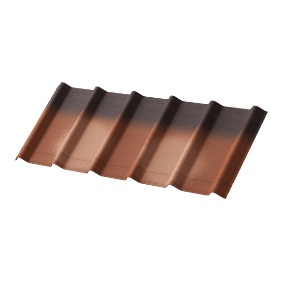 Черепица Ондувилла Фиорентино окрашена в 4 слоя: грунтовочная окраска плюс три декоративных слоя, которые защищают кровлю от выгорания.